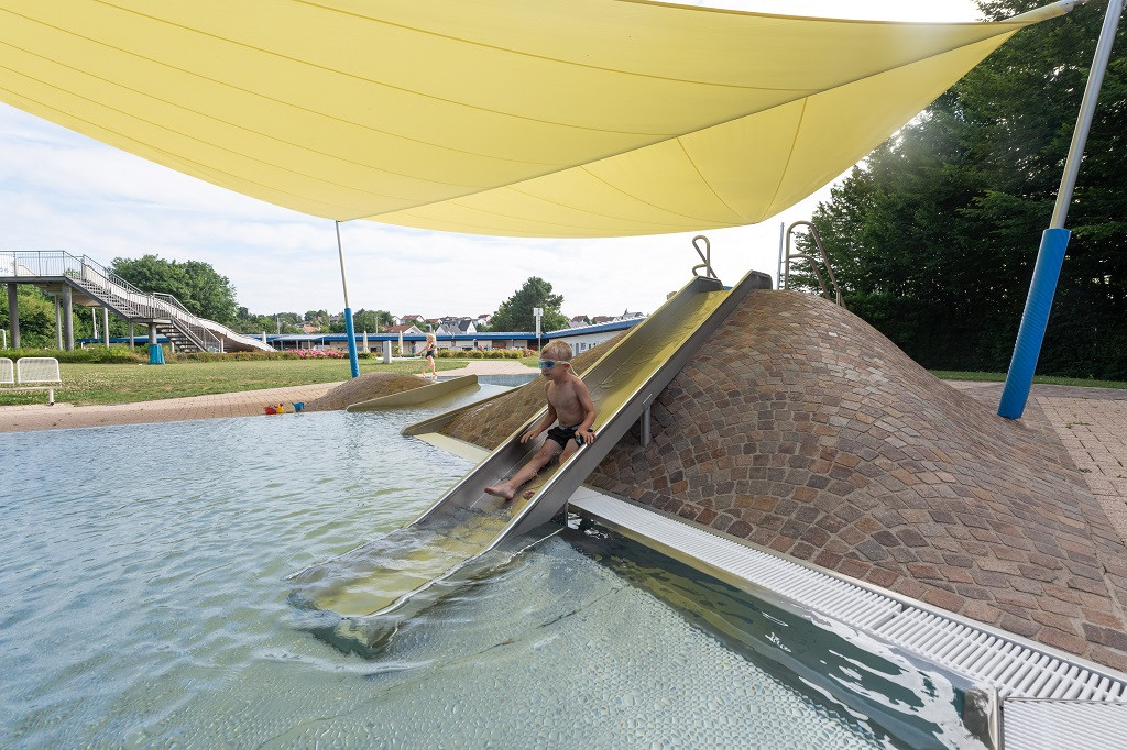 Das 50 m Becken wird in einen Schwimmer- und einen Erlebnisbereich untergliedert. Hauptattraktion ist die 15 m lange und 5 m hohe Breitwellenrutsche, daneben steigern Wasserblubber und Massagedüsen sowie ein Wasserspeier den Erlebniswert.