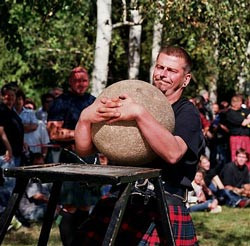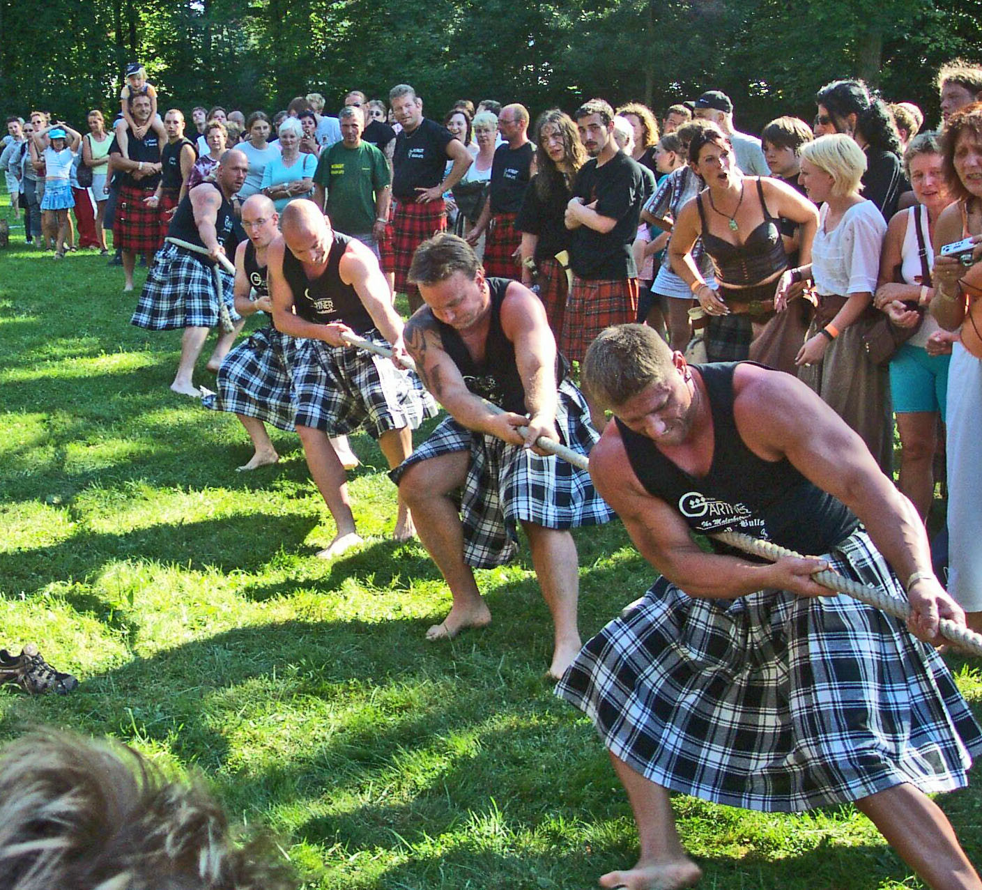 Dudelsackspieler, Trommler und teilnehmende Sportler der traditionellen Highland Games aus allen Teilen des Landes und dem Ausland und viele, viele Händler bieten alles an, was von den Inseln kommt.