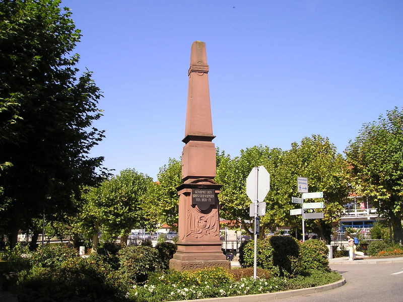 Es wurde 1891 eingeweiht und den Gefallenen des Deutsch-Französischen Krieges von 1870/71 gewidmet. Ein roter Sandsteinobelisk ragt aus einem Postament. Die ursprünglich auf der Rückseite des Denkmals angebrachte Tafel mit den Sinsheimer Kriegsteilnehmern wurde im Zweiten Weltkrieg eingeschmolzen.