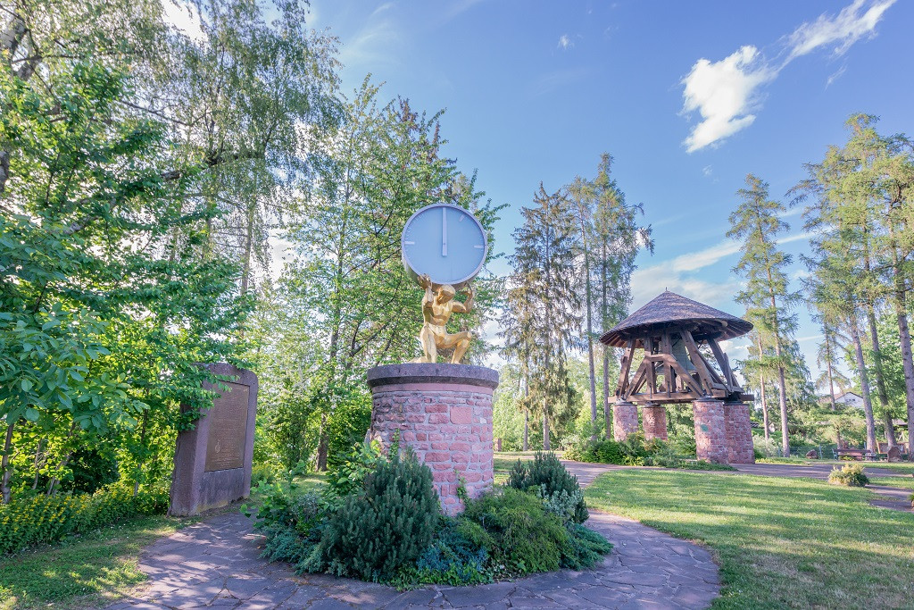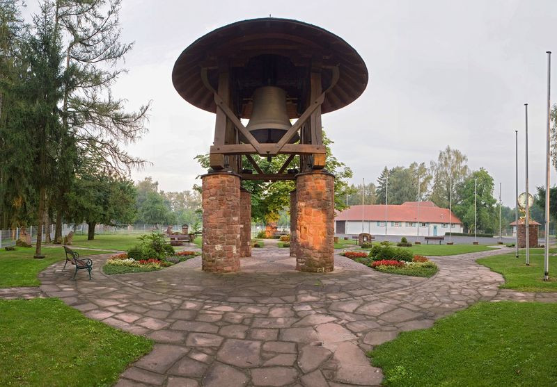 Eine gigantische freistehende Glocke erwartet den Besucher vor dem Wildpark Schwarzach