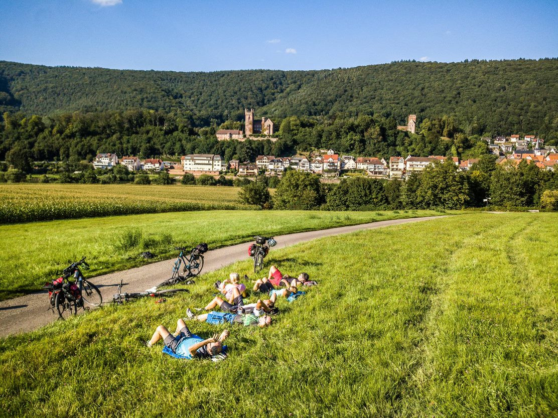 Der Reilsheimer Straße folgen, am Kreisel, die zweite Abzweigung (gerade aus) entlang der Industriestraße bis zum Übergang in die Wiesenbacher Straße. Nun fahren wir die zweite Straße rechts und folgen dem Radweg nach Wiesenbach. Es geht nur ein kleines Stück durch die Gemeinde. Nach der Unterquerung der B45 biegen wir in die Straße „In der Au“ nach links ab, fahren am Kreisel nach rechts, in die ersten Strasse nach links und gleich danach wieder links auf den Waldweg nach Neckargemünd. Hier folgt ein letzter Anstieg, bevor es entlang eines schönen Waldwegs am Hollmuth immer geradeaus Richtung Neckargemünd geht. Genießen Sie den Blick in das Elsenztal. Am Ende des Waldwegs beginnt die Gemeinde Neckargemünd und es geht von nun an nur noch bergab bis in die Mühlgasse direkt an der Elsenz bis die Tour in der Neckargemünder Altstadt endet. Nach dieser abwechslungsreichen und landschaftlich herrlichen Berg- und Taltour locken nun die vielen schönen Einkehrmöglichkeiten in der historischen Altstadt von Neckargemünd.