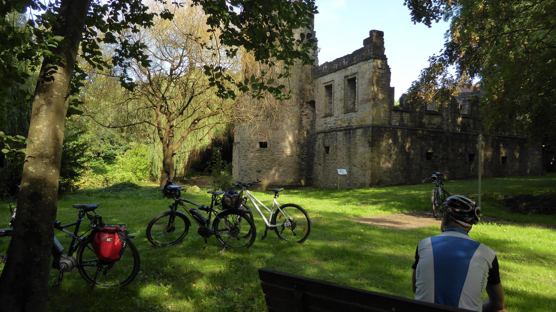 Bevor uns die Route zurück nach Waibstadt führt passieren wir das Dorf Daisbach. Hier liegt etwas versteckt hinter der evangelischen Kirche in einer Parkanlage mit See die Ruine des Schloss Daisbach. Die Wasserburg wurde vermutlich um 1200 erbaut. Im Dreißigjährigen Krieg wurde die Burg beschädigt, Teile des Hauptbaus sind dabei wohl abgebrannt. Versuche das Schloss wiederaufzubauen scheiterten und die Anlage verfiel zunehmend und diente schließlich nur noch als Steinbruch. Lediglich der Gewölbekeller wurde noch als Lager verwendet. Durch ehrenamtliche Sanierungs- und Sicherungsarbeiten ist die Ruine seit 1995 wieder für die Öffentlichkeit zugänglich.