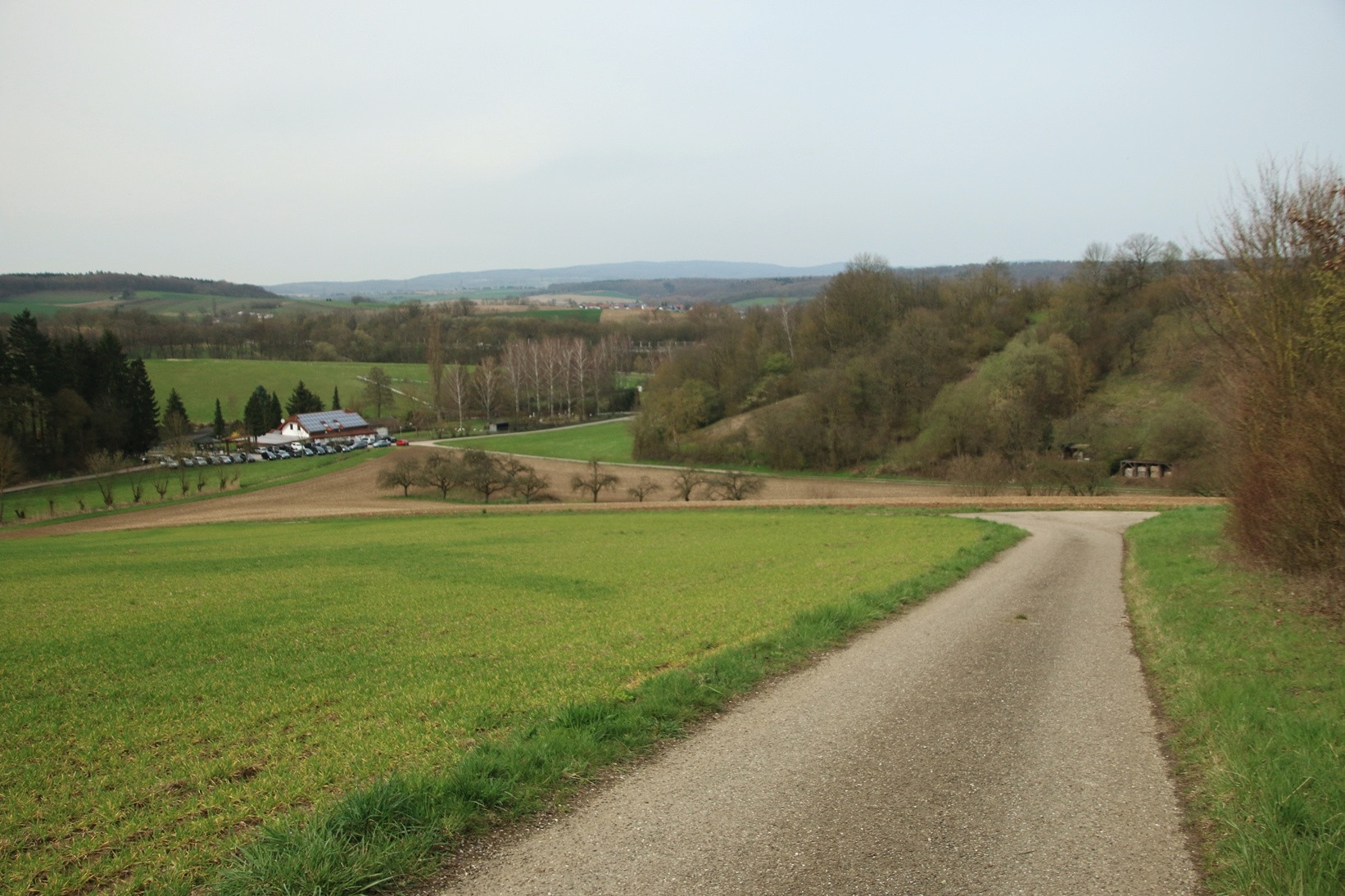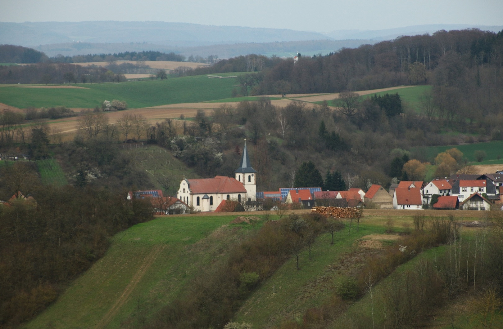 Nach dem Tierpark sehen wir linker Hand einen steilen Pfad der auf die Kohlplatte bis zum Kopfwald hoch führt. Das ist die konditionelle Herausforderung des Tages, die uns jedoch mit einem herrlichen Blick bis zum Odenwald belohnt. Wir umrunden den Kopfwald nach links und gelangen so über den höchsten Punkt unserer Tour bergab nach Sinsheim - Eschelbach. Ein gut ausgeschilderter Radweg führt uns am schönen Rathaus und durch die Wohngebiete zum Ortsausgang in Richtung Eichtersheim. Der Radweg verläuft nun parallel zur Straße (B 292) am Eschelbach entlang, vorbei an einem Reiterhof bis nach Eichtersheim. Hier mündet der Eschelbach im Waldangelbach. Weiter geht es entlang eines gut ausgebauten Fuß- und Radweges, der uns von der Bundesstraße weg führt. Das nächste Ziel der Tour ist die Weinbaugemeinde Mühlhausen.