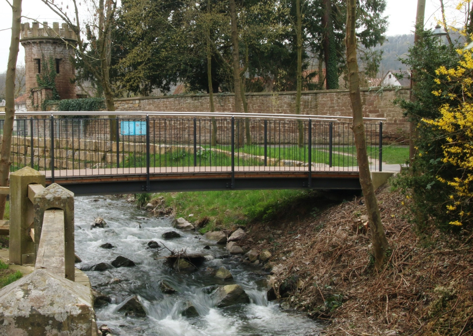 Mit etwas Zeit im Gepäck lohnt sich ein Abstecher zum Eichtersheimer Schlosspark (Angelbachtal) mit Wasserschloß. Der Schloßpark ist ein sehr beliebter Veranstaltungsort für zahlreiche überregional bekannte Feste und Märkte. Die jährlich stattfindenden Highland Games und der Mittelaltermarkt sind nur zwei Beispiele. Eine weitere Besonderheit, die das ganze Jahr über in Angelbachtal - Eichtersheim zu besichtigen sind, sind die Großplastiken vom ortsansässigen und überregional bekannten Künstler Jürgen Goertz. Auch auf dem angrenzenden Friedrich-Hecker-Platz, hier steht das Geburtshaus des gleichnamigen Revolutionärs, und am Kreisel sind weiter Skulpturen zu sehen. Nach dem Abstecher (der im GPS Track enthalten ist) verfolgen wir wieder unsere Rundtour in Richtung Mühlhausen. Der gut ausgebaute Fuß- und Radweg entlang des Waldangelbachs führt uns auf herrlichen Pfaden durch die Kraichgauer Kultur- und Auenlandsschaft.