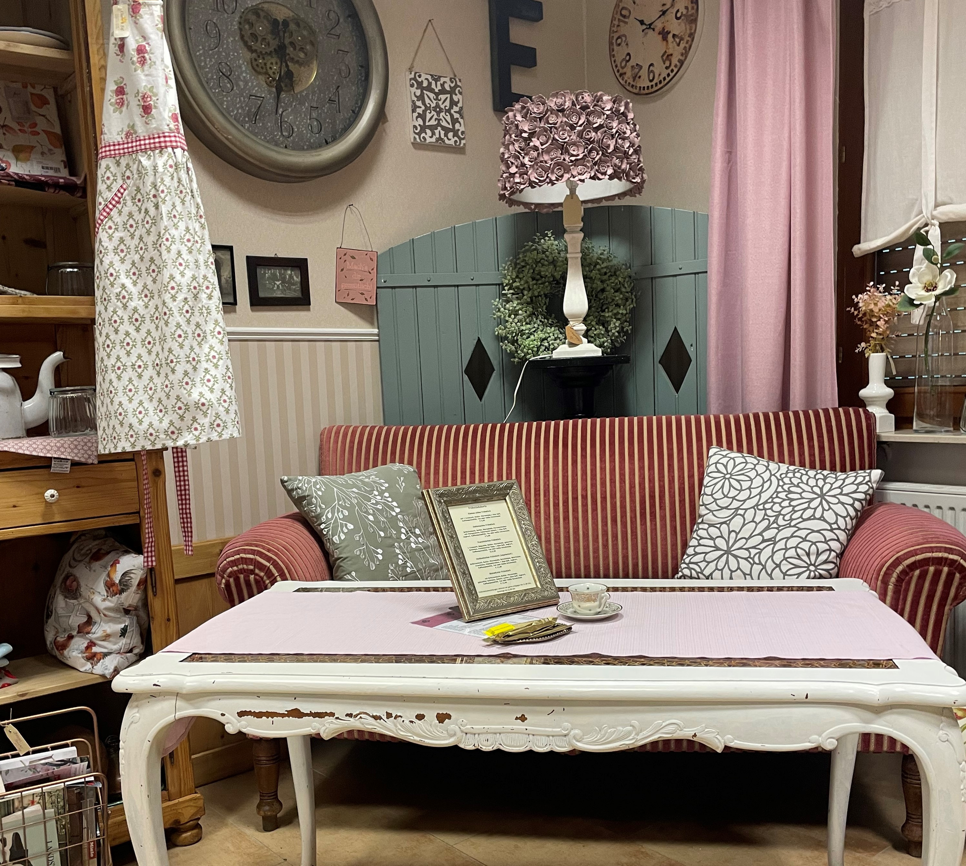 Kaffeegenuss, der den Gaumen verwöhnt, schöne Dinge, die den Augen schmeicheln, Düfte, die die Nase verzaubern ... Das alles finden Sie bei uns. Genießen Sie Kaffee und Kuchen oder das gemütliche Frühstück in nostalgischer Atmosphäre. Neben edlen handgemachten Seifenstücken, wohltuender Badekosmetik, gestaltet wie kleine Kunstwerke, entdecken Sie auch Schönes und Stilvolles für Haus und Garten, antike Schätzchen oder besondere Dekorationen.