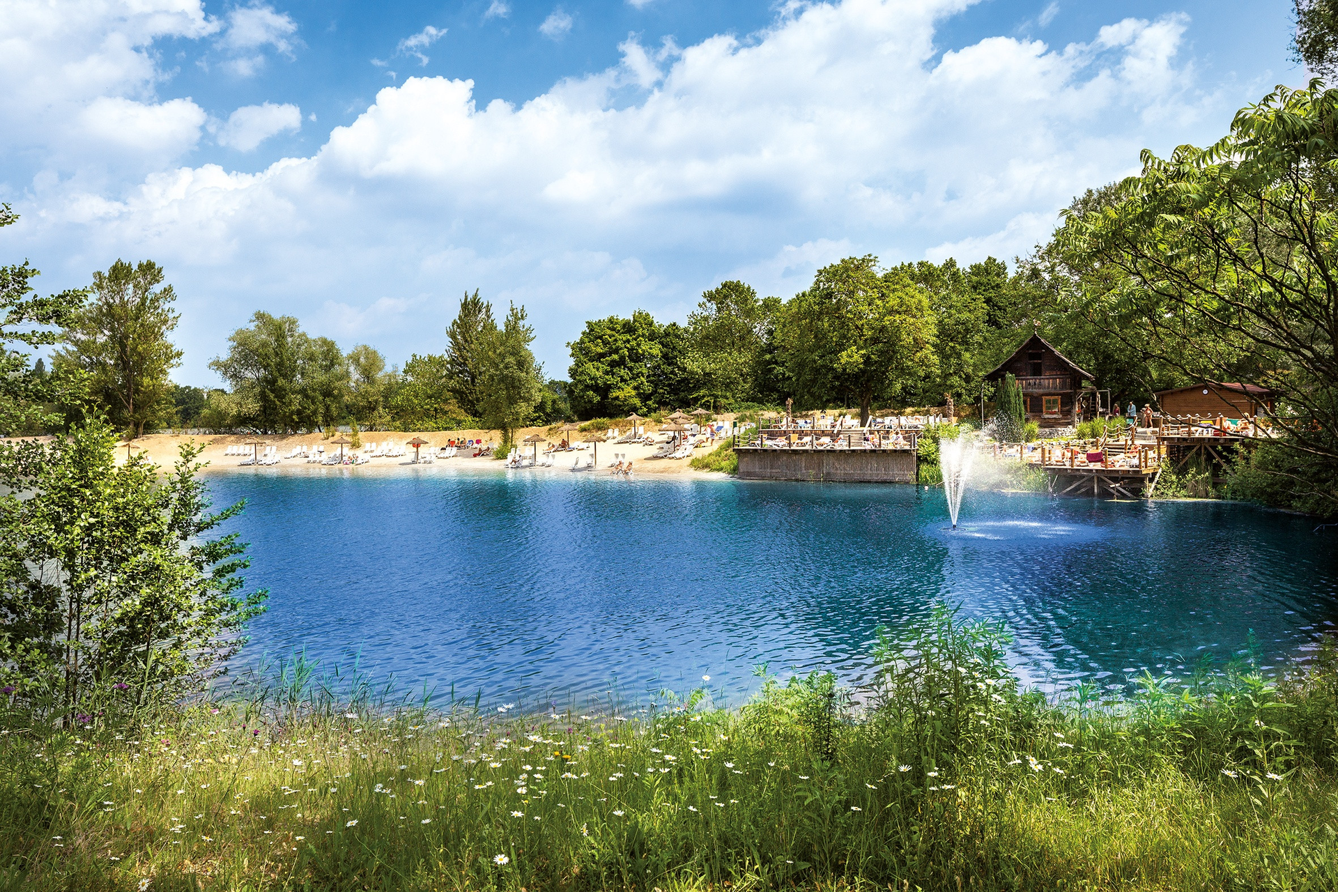 Direkt an das Saunafreigelände des Erlebnisbades Miramar in Weinheim lockt der Natursee zum textilfreien Baden. Das ist Urlaub direkt vor der Haustür am Naturstrand.