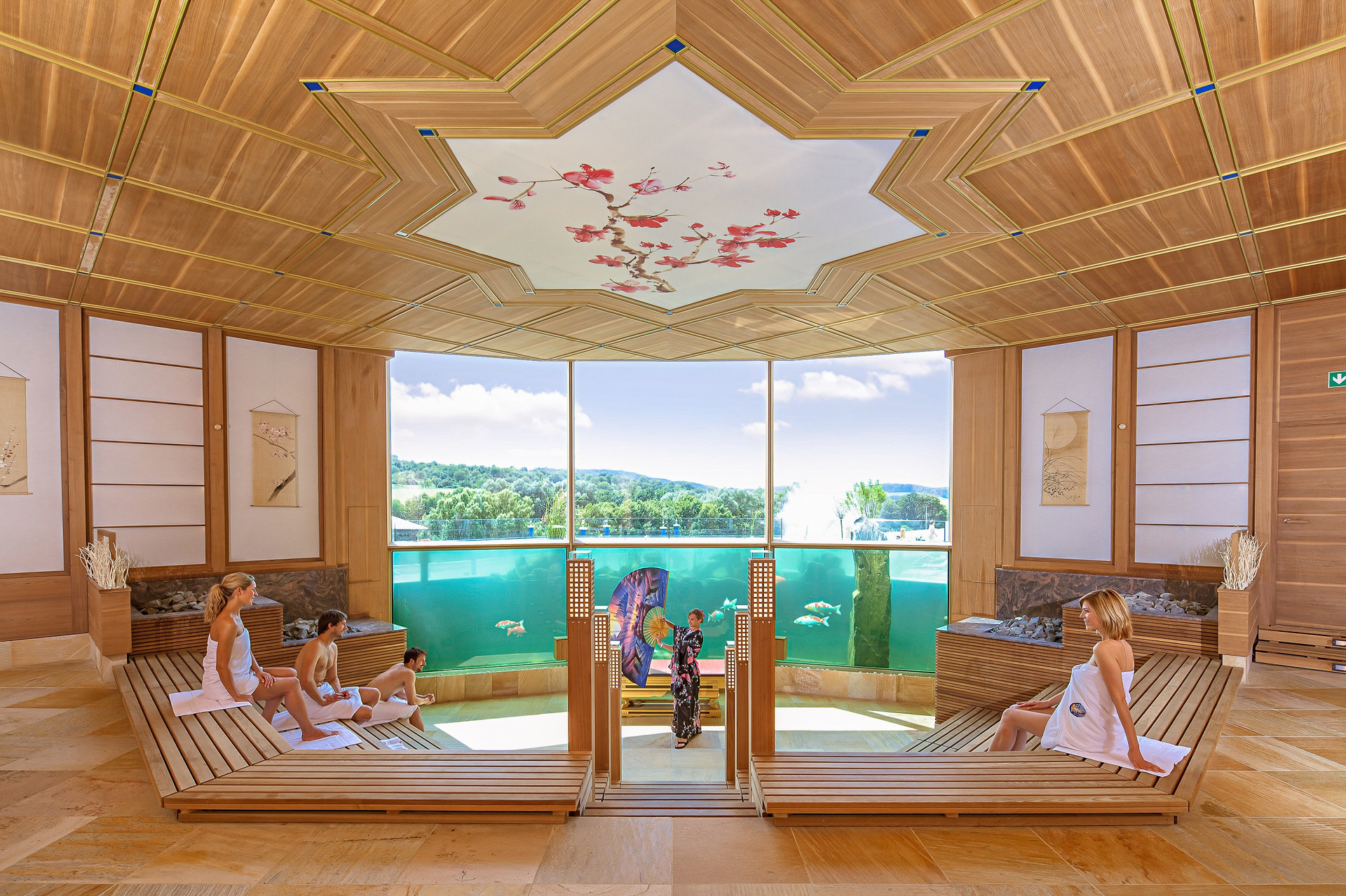 Unbegrenztes Saunavergnügen verspricht die Vitaltherme & Sauna. Mit der Kino-Sauna, dem Wiener Kaffeehaus oder der Koi-Sauna, die zur größten Sauna der Welt gekürt wurde, wird Saunieren zu einem unvergesslichen Erlebnis. Neben wohltuenden Duftreisen, entspannenden Klangschalenzeremonien und exklusiven Aufgüssen, sorgen insbesondere die Salz-, Zucker- und Honiganwendungen für erholsamen Saunagenuss. Pure Erfrischung nach einem Saunagang spenden die Calla-Blütendusche oder der einzigartige Panoramapool mit Blick auf die traumhafte Landschaft. Seit 2021 dürfen sich Gäste auch über das weltweit erste eigenständig fahrende Saunaboot Freya freuen. Während der sanften Fahrt über den thermeneigenen See haben die Gäste durch die großen Panoramascheiben einen traumhaften Blick auf das Naturschutzgebiet.