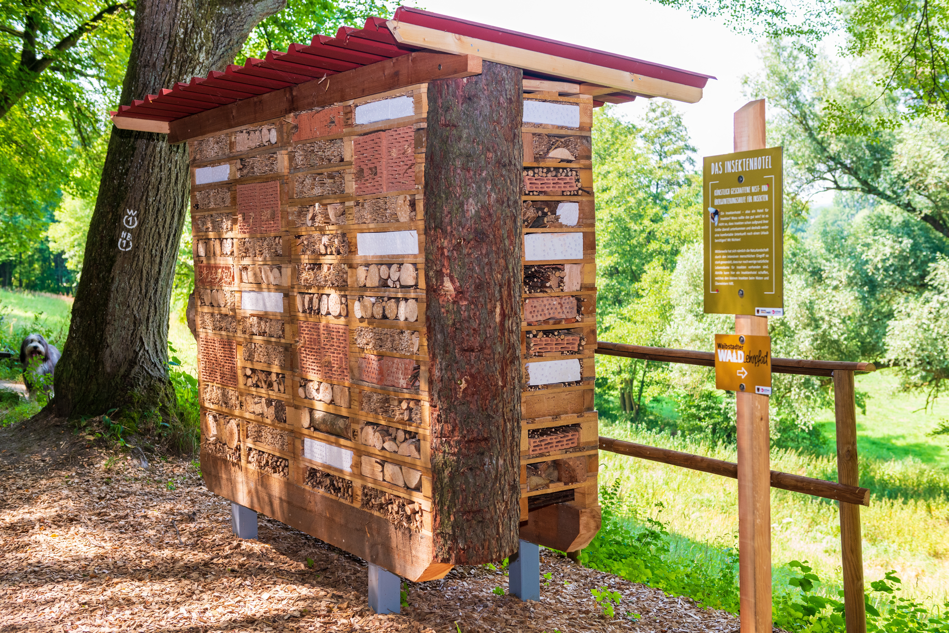 Waldlehrpfad mit  Schautafeln, Insektenhotel, Waldsofa u.v.m. Der Weg führt entlang an der Schwarzbachaue mit Orchideenwiese sowie am jüdischen Friedhof und am Dr. Weil-Mausoleum.
