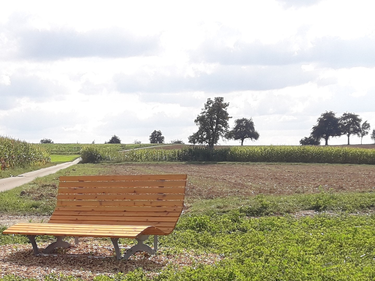 Die geschwungene Holzliege bietet eine gemütliche Rastmöglichkeit für Wanderer, Radfahrer und Spaziergänger. Machen Sie einfach mal eine Pause!