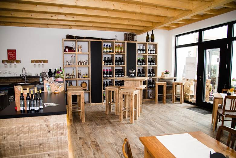 Gäste werden in der neu errichteten Vinothek,  in dem Innenhof mit mediterranem Flair oder im urigen Gewölbekeller von 1877 empfangen. Neben den hauseigenen Weinen werden auch Edelbrände aus handverlesenem Obst, aus biologisch integriertem Anbau, angeboten.