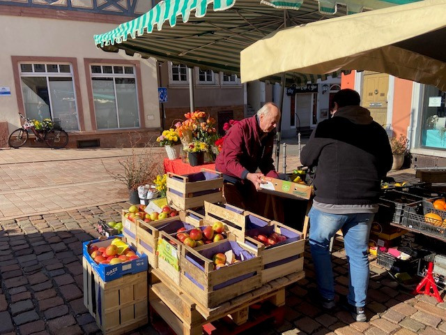 Im Herzen der Altstadt – Neckargemünder Wochenmarkt auf dem Marktplatz